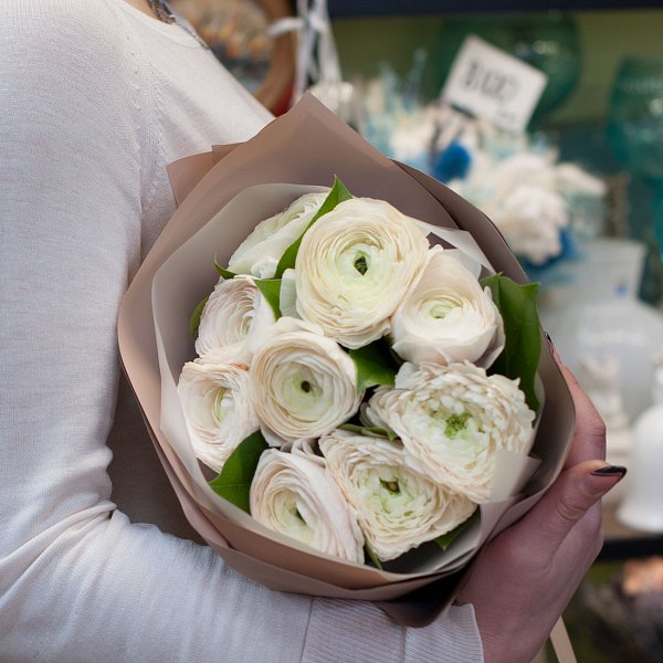 Букет состоит из 9 ранункулусов сорта Hanoi, которые отличаются своей нежностью и красотой. Эти цветы символизируют любовь, нежность и заботу, что делает их отличным выбором для выражения своих чувств.