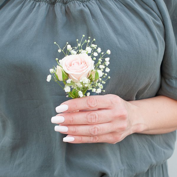 В комплекте с букетом идет бутоньерка, что позволяет жениху выглядеть гармонично с невестой.