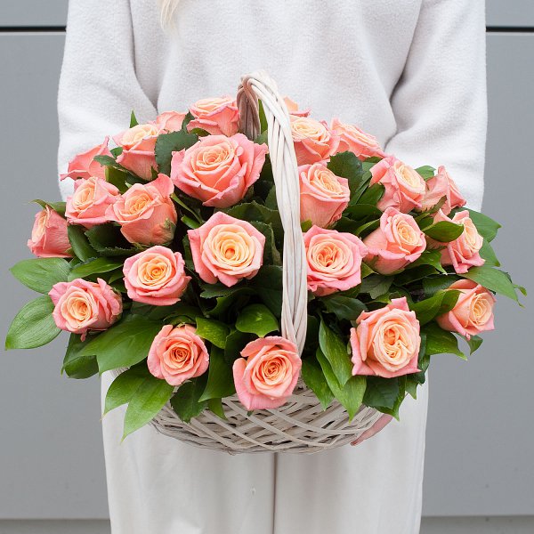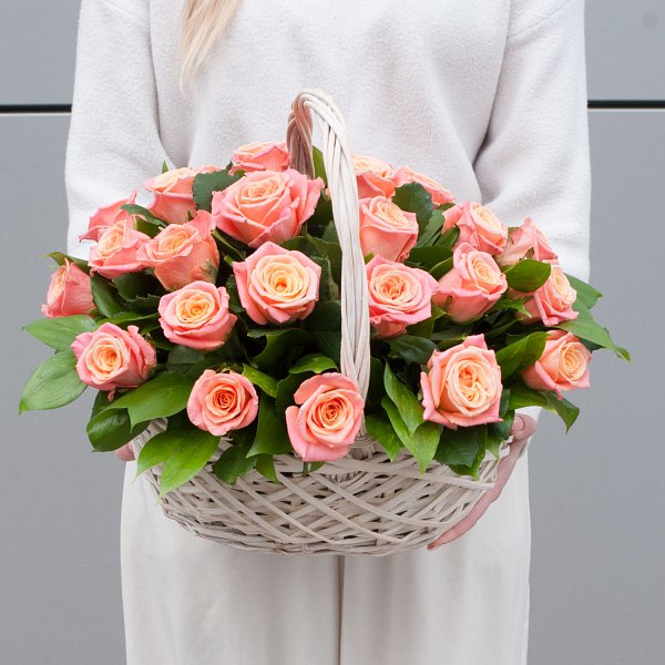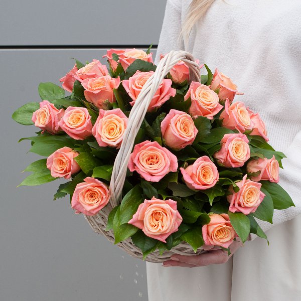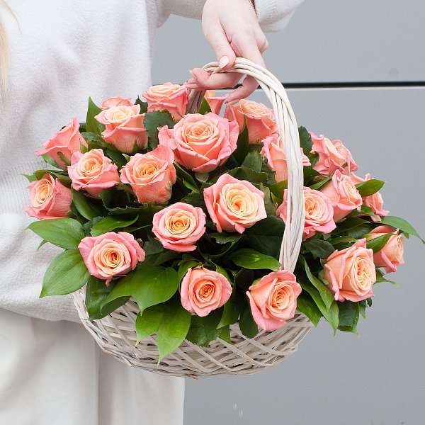 Корзина с цветами "Сочный персик"