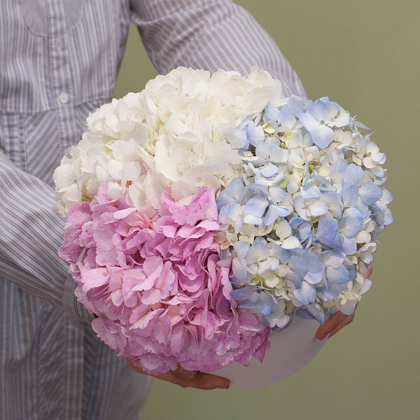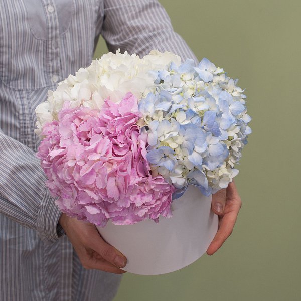 Шляпная коробка с гортензией. По Вашему желанию цветовая гамма может быть любой.
