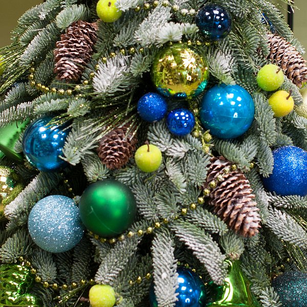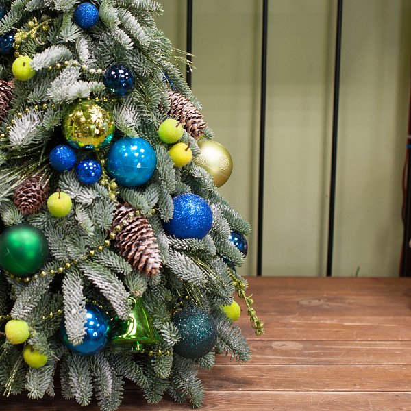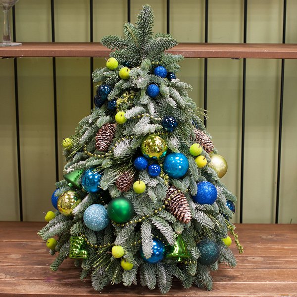 Елка ручной работы из елового лапника 60 см в сине-бирюзово-зеленых оттенках.