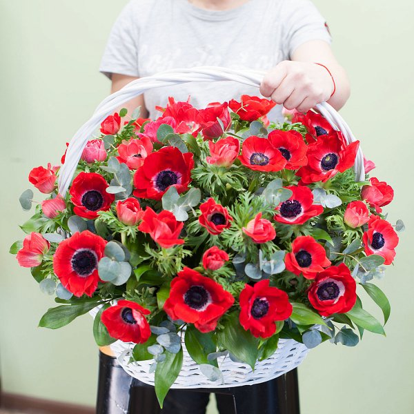 Корзина из анемонов "Прекрасная Скарлет"(артикул 330-C)