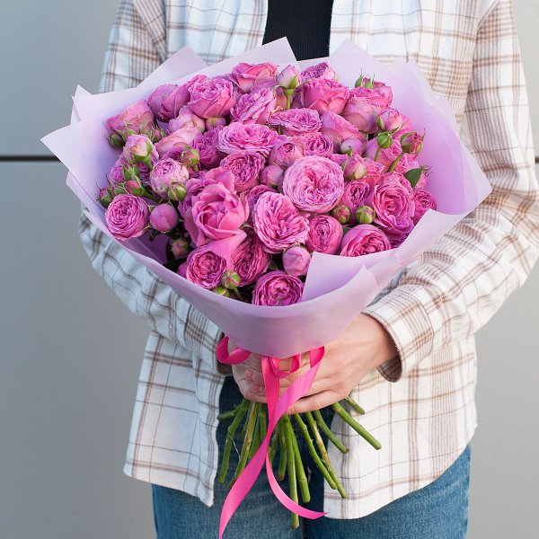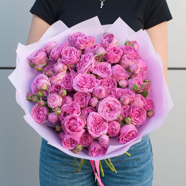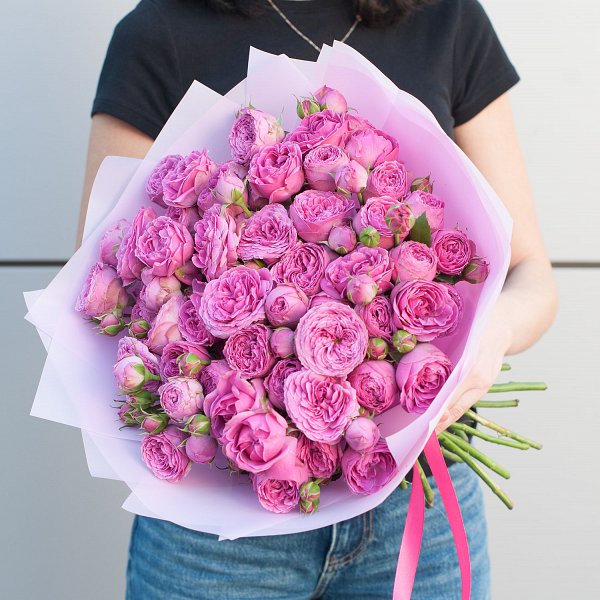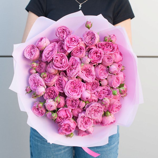 Букет из ярко-розовых кустовых пионовидных роз в дизайнерской упаковке "Родос" - это стильный и элегантный подарок, который подойдет для любого повода и станет незабываемым сюрпризом для ваших близких.