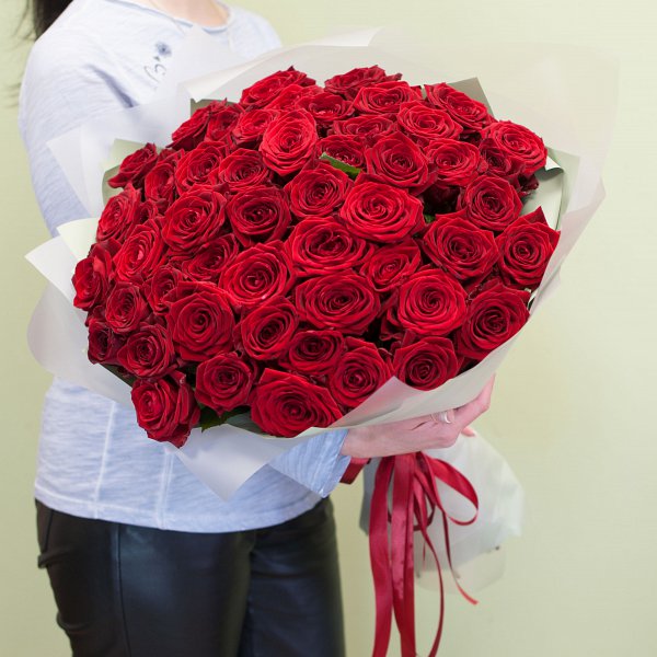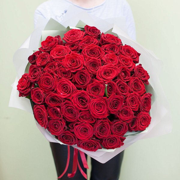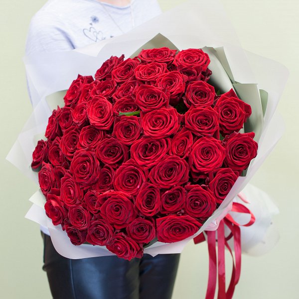 Букет из красных роз Ред Наоми в подарочной упаковке.