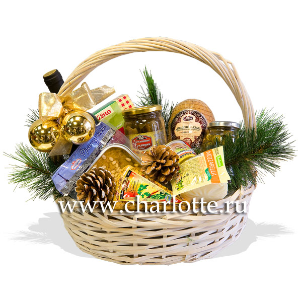 Состав: Хлебцы Golden Rusk , грибы подосиновики 350 гр (консервированные), рулет куриный в/у 330 гр., маслины без косточек, паштет с грибами 125 гр. в ж/б, паштет французский запеченный 250 гр. в вакумме (Царицыно), сыр карамболь пряный, сыр моцарелла. Корзинка оазис, елка, шарики,шишки. Красное сухое вино 0,7 (Франция в подарок).