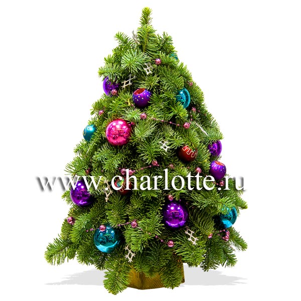Елочка из лапника и новогодних игрушек в лилово-сиреневых тонах. Возможно изменение цветовой гаммы, для этого звоните нашим операторам по телефону или указывайте в разделе "комментарии для флориста" при заказе через интернет.