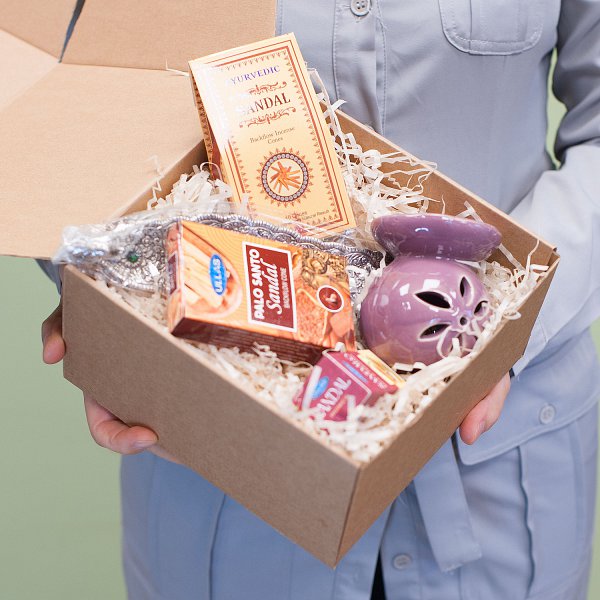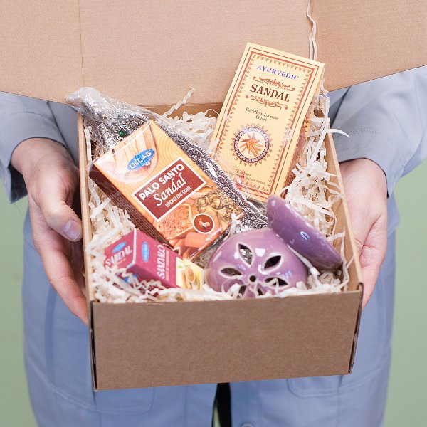 Подарочная коробка из благовоний, масла, а так же аромалампы и подставки под благовония с запахом Сандала.