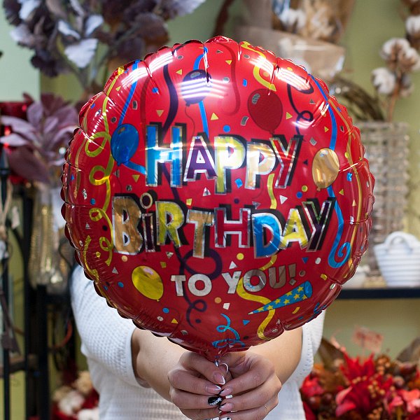 Фольгированный шарик 30 см с надписью "Happy birthday to you"