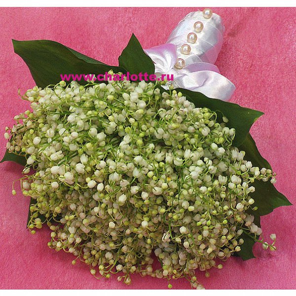 Букет невесты без портбукетницы из белых ландышей. В букете невесты 100 ландышей.