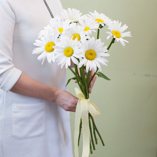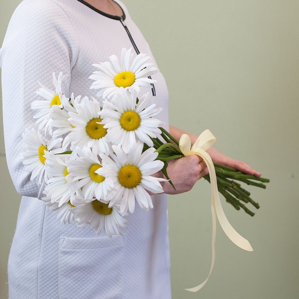 Букет из 11 крупных ромашек с лентой.