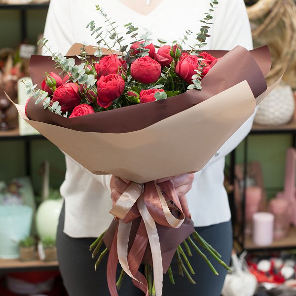 Букет цветов "Пионовидные розы" станет отличным выбором для тех, кто хочет сделать оригинальный и запоминающийся подарок. Этот букет будет радовать получателя своей красотой, ароматом и уникальностью.