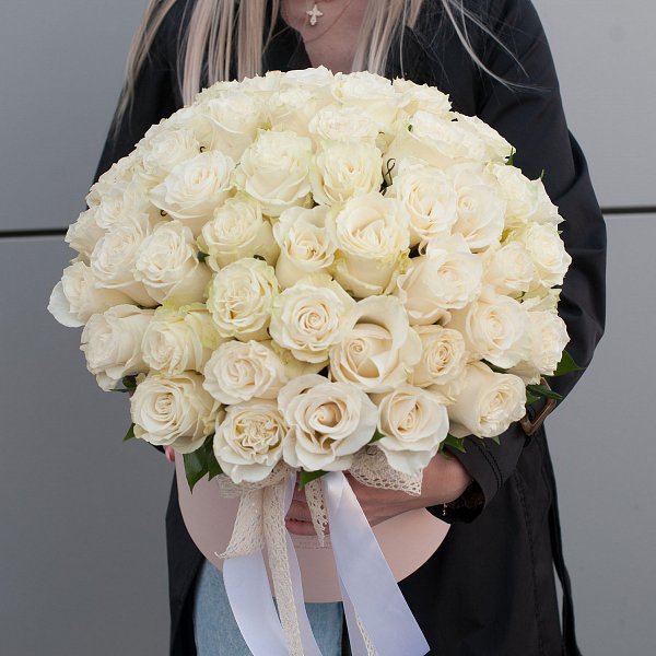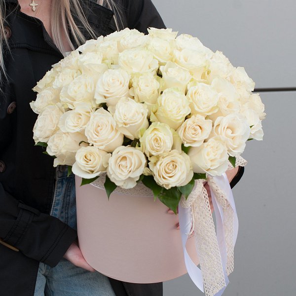 Шляпная коробка с розами "Бриллиантовое сияние"