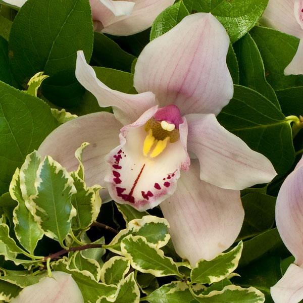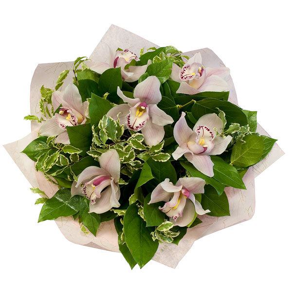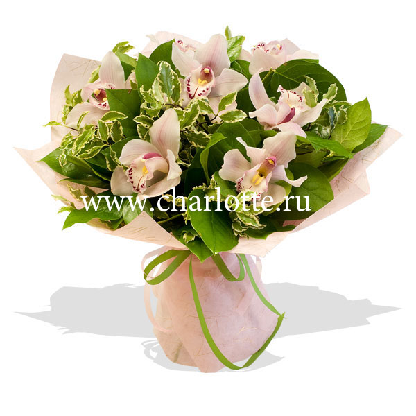 Небольшой букетик из нежно-розовых орхидей с декоративной зеленью в подарочной упаковке. Во Вашему желанию цветовую гамму букета можно изменить (белая, желеная, желтая, насыщенно-розовая), для этого звоните в наши салоны цветов. Цветы оформляются в подарочную упаковку на усмотрение нашего флориста.