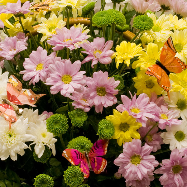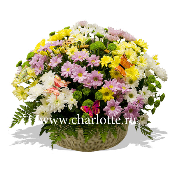 Корзинка из хризантем "Краски художника"(артикул 64-C)