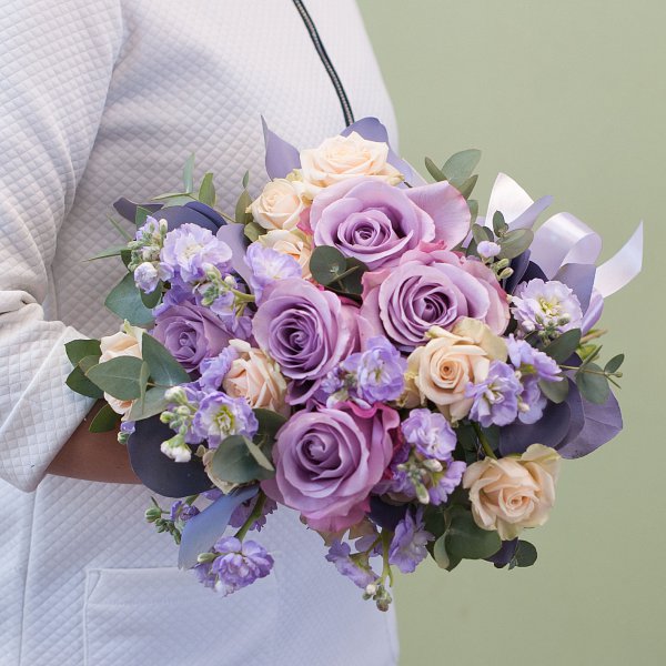 Букет "Паулина" выполнен в элегантном и утонченном стиле, который подчеркнет вашу индивидуальность и станет ярким акцентом на вашем празднике.