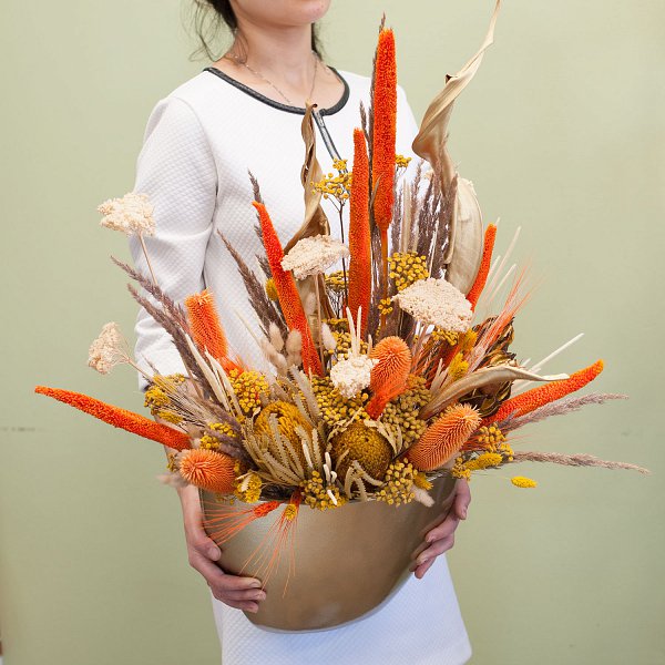 Сборка букета осуществляется на стеблях, что придает ему естественный и натуральный вид.
