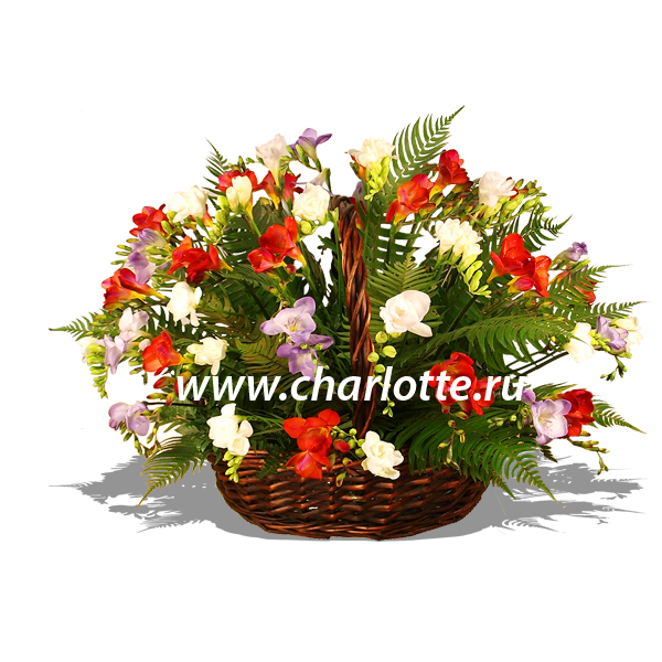 Яркая, очень красивая корзинка из разноцветных фрезий. По Вашему желанию цветовую гамму можно изменить, для этого звоните в наш салон цветов или указывайте в разделе "комментарии для флориста" при заказе через интернет.