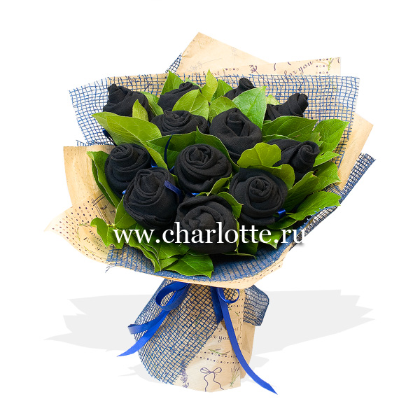 Букет из 12 черных пар с декоративной зеленью в упаковке. По Вашему желанию цвет композиции можно изменить, для этого звоните нашим операторам по телефону или указывайте в разделе "комментарии для флориста" при заказе через интернет.