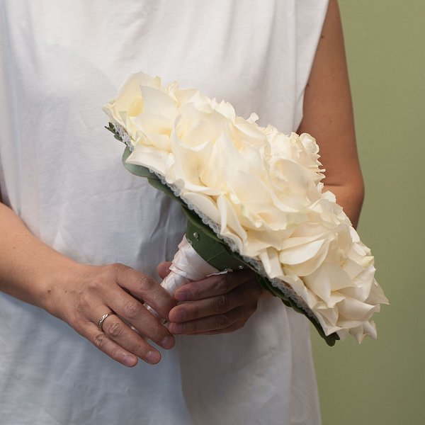Букет невесты из нежно-кремовых роз сорта Венделла.