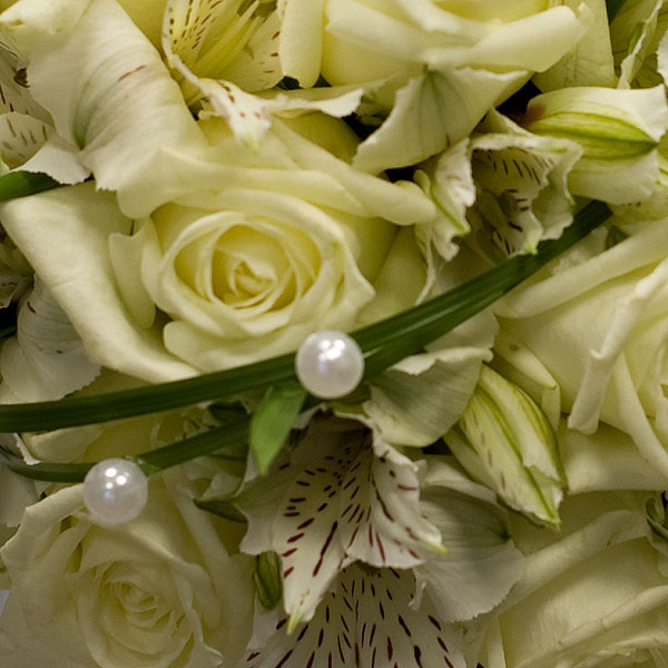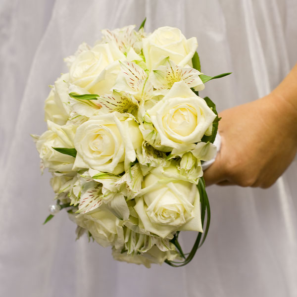 Букет невесты из белых роз и белых альстромерий.
