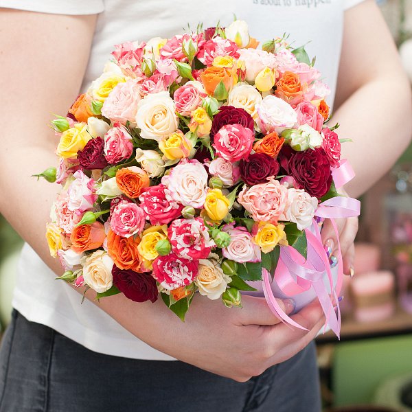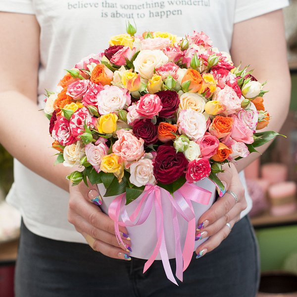 Коробка из кустовых роз "Радужная"(артикул 885-C)