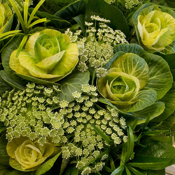 Букет цветов в зеленной гамме из брасики и амми. Цветы оформляются в подарочную упаковку на усмотрение нашего флориста.