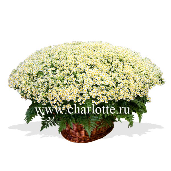 Большая корзина из мелких ромашек с декоративной зеленью. Вы можете заказать любое количество ромашек, для этого звоните в наши салоны цветов.