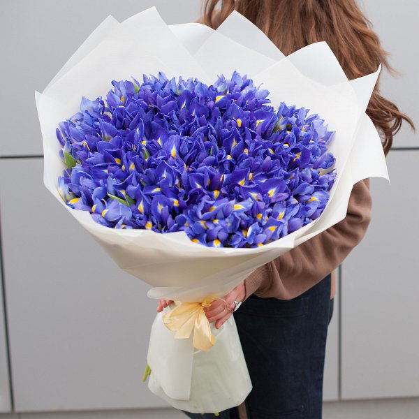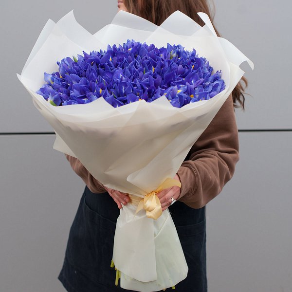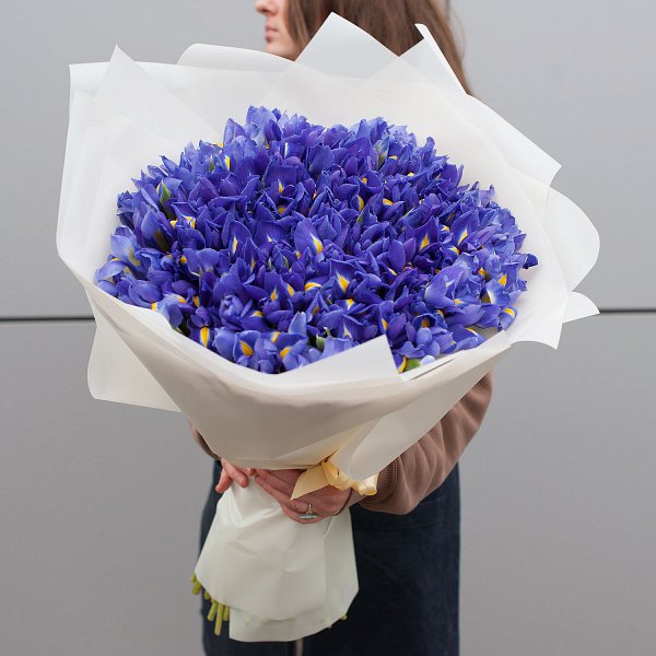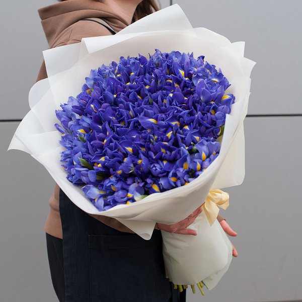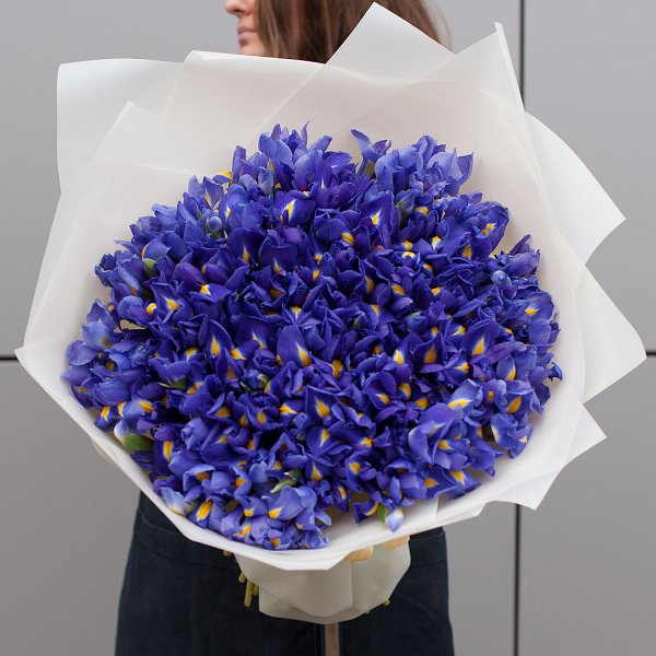 Букет состоит из 151 синего ириса, что делает его ярким и запоминающимся. Ирисы - символ любви, преданности и нежности, что делает этот букет еще более привлекательным.