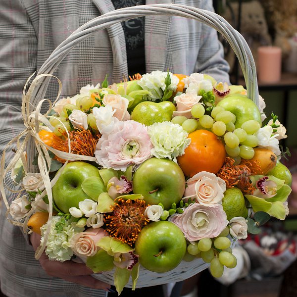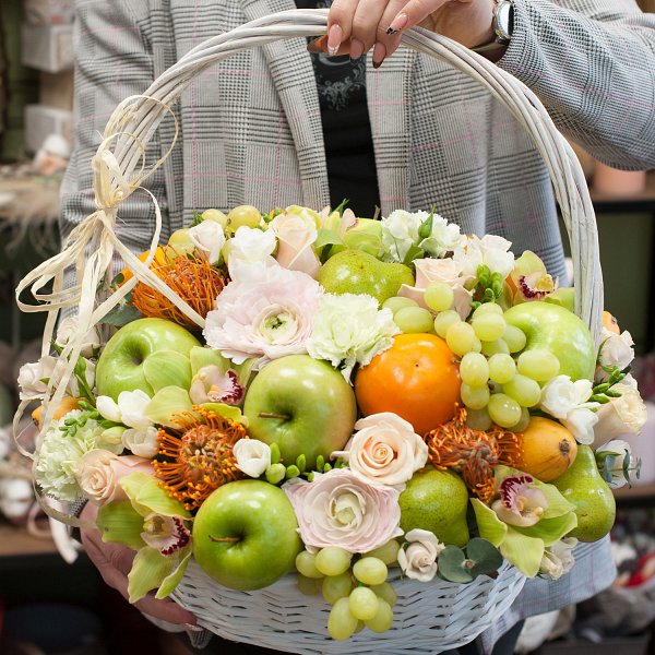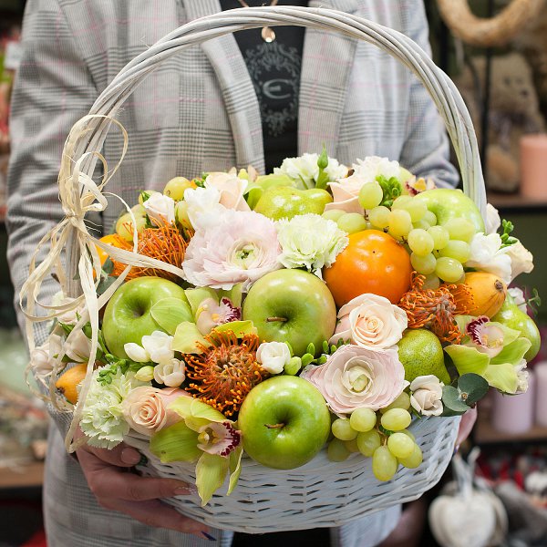 Корзина из фруктов и цветов "Хорошего настроения"(артикул 978-C)