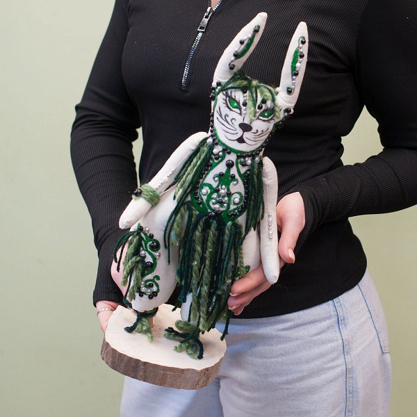 Заяц-Шаман имеет зеленый и белый цвета, что придает ему яркость и оригинальность.